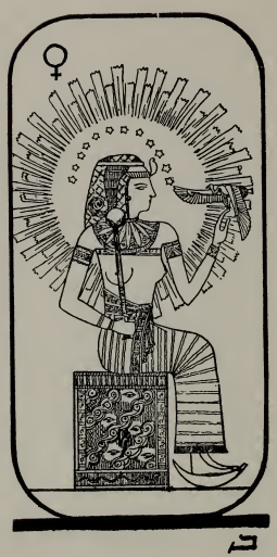 The tiara upon her head is the emblem of the power of intelligence lighted up by wisdom represented by the crescent. The figure is seated, because science united to wisdom and will-power is immovable.